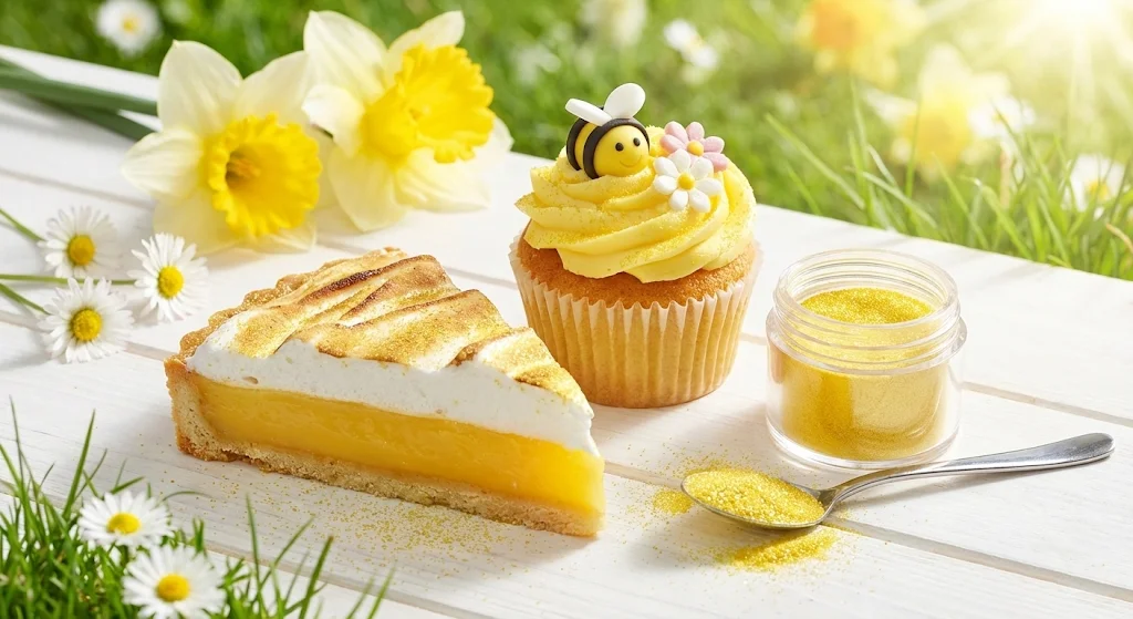 Spread sunshine with our radiant yellow luster dust for cakes. This bright edible yellow glitter creates cheerful lemon cakes, adorable bee themes, and happy celebration desserts.